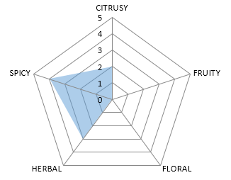 Aroma profile: distinct fresh citrus, hint of black pepper